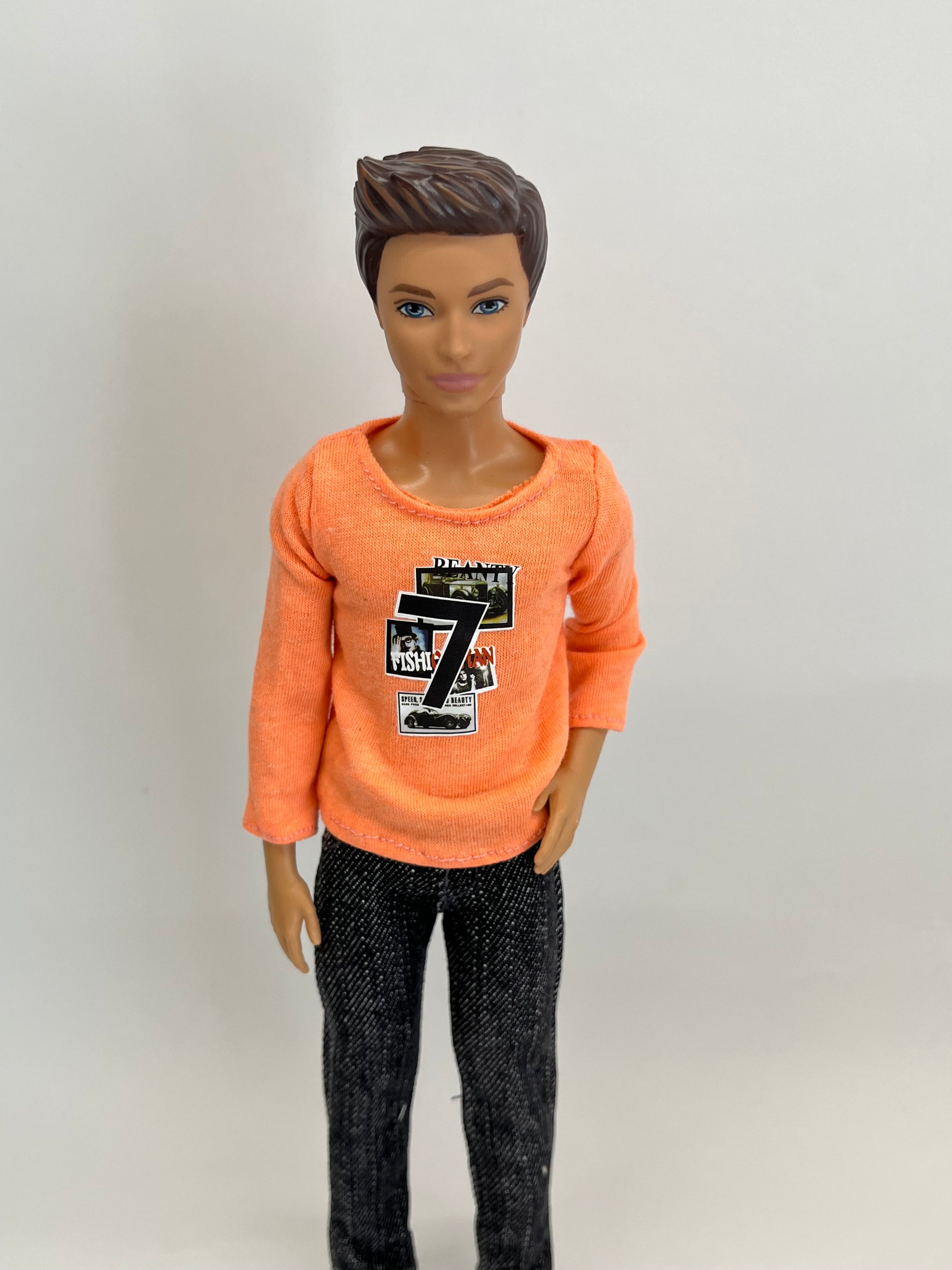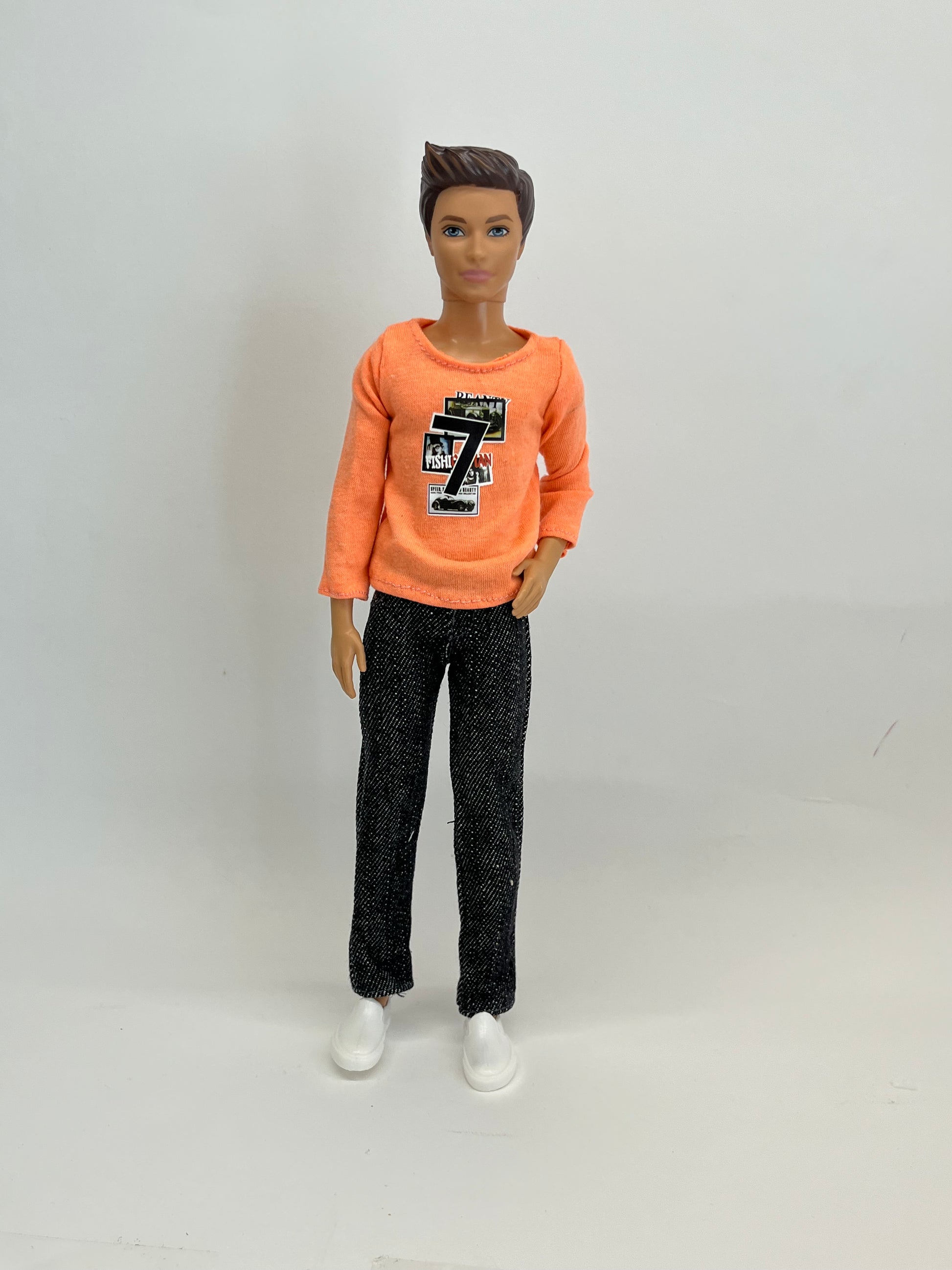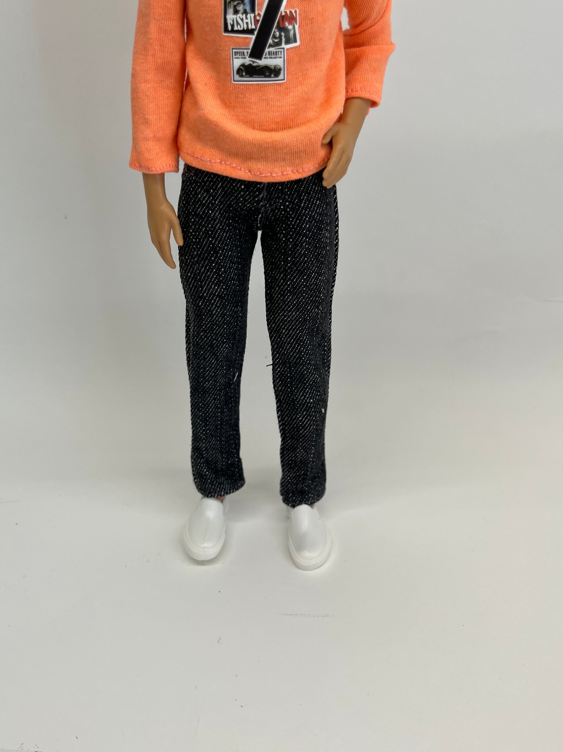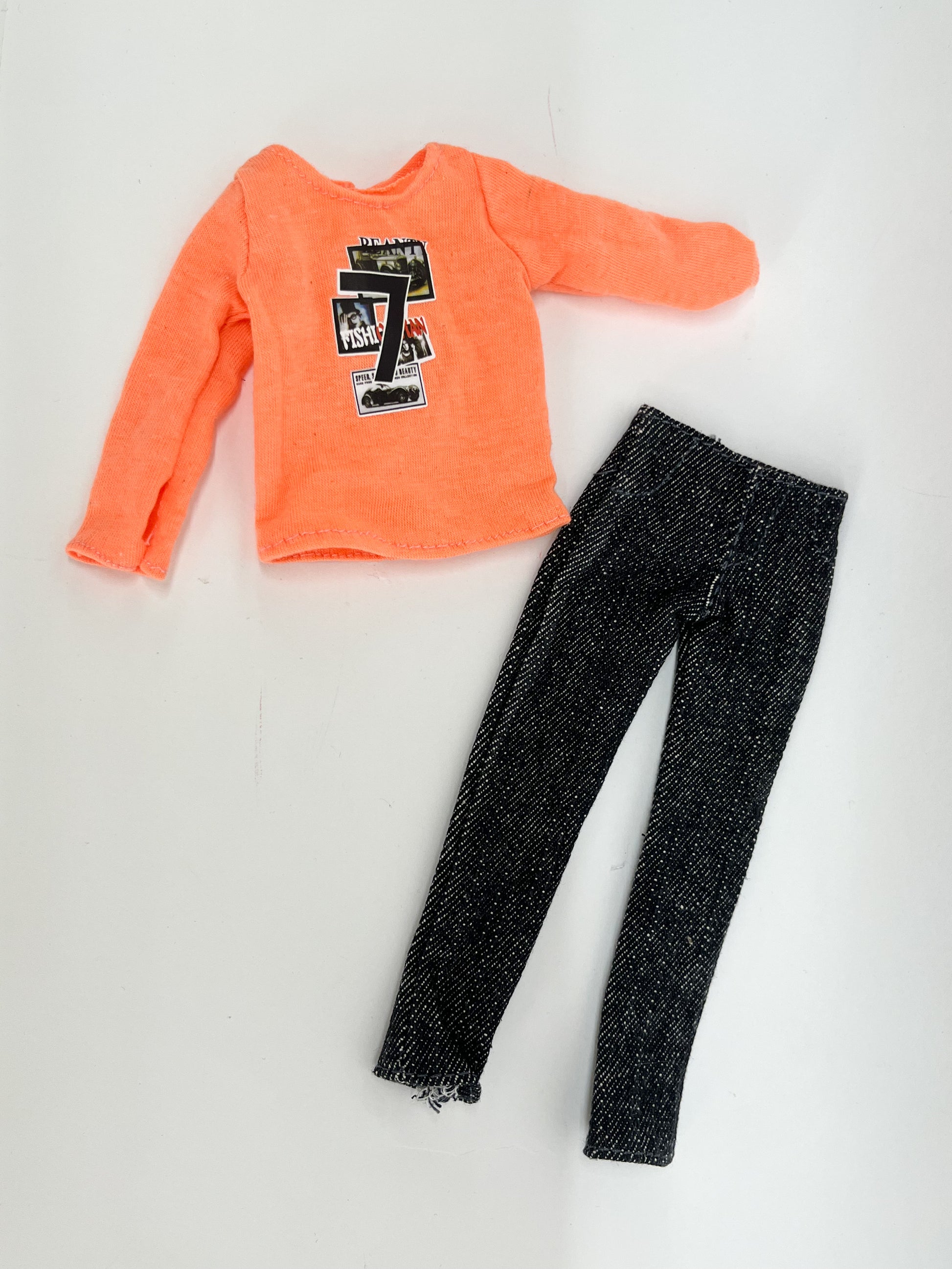Комплект дънки със задни джобове и блуза с дълги ръкви за кукла Кен