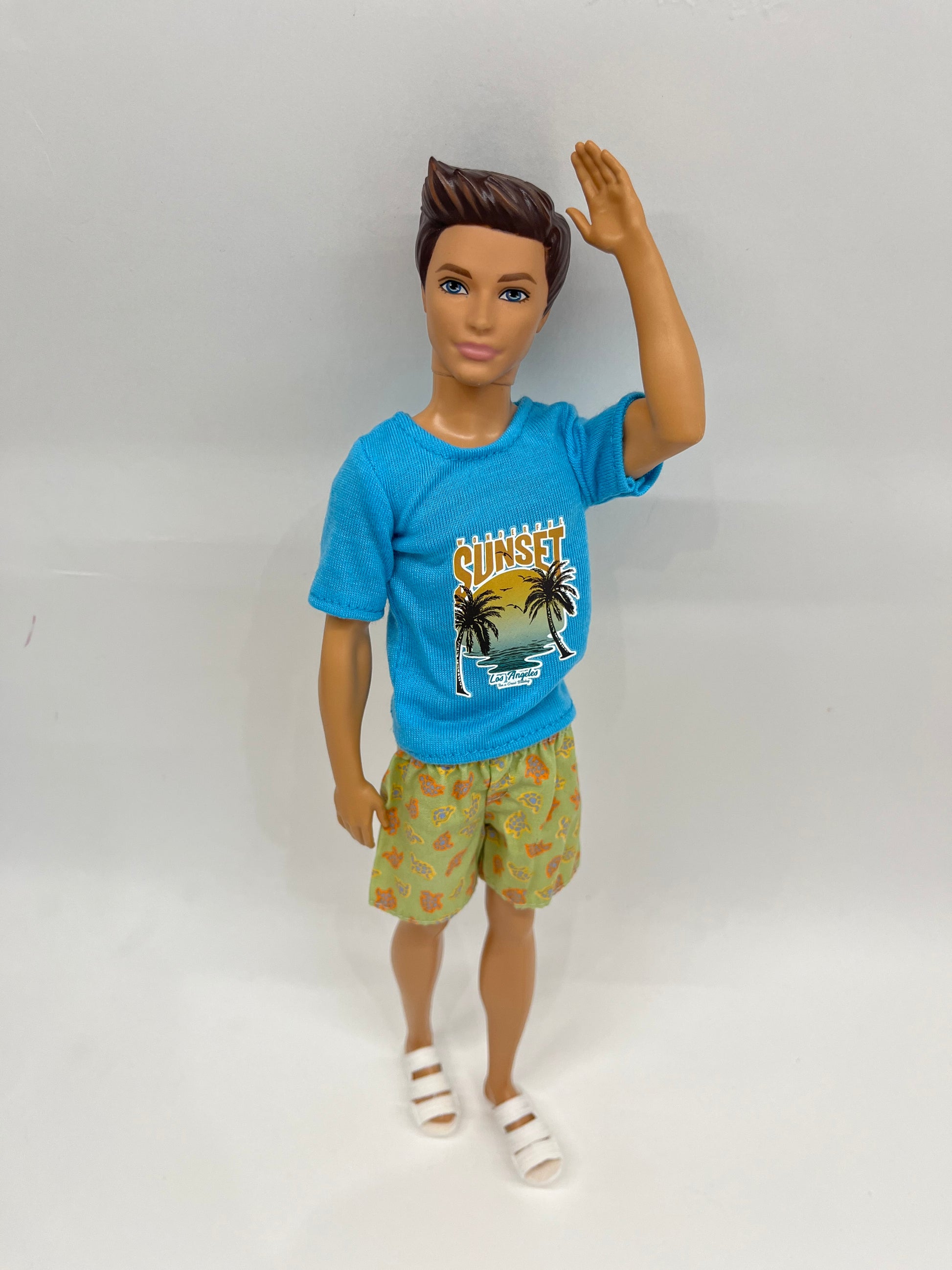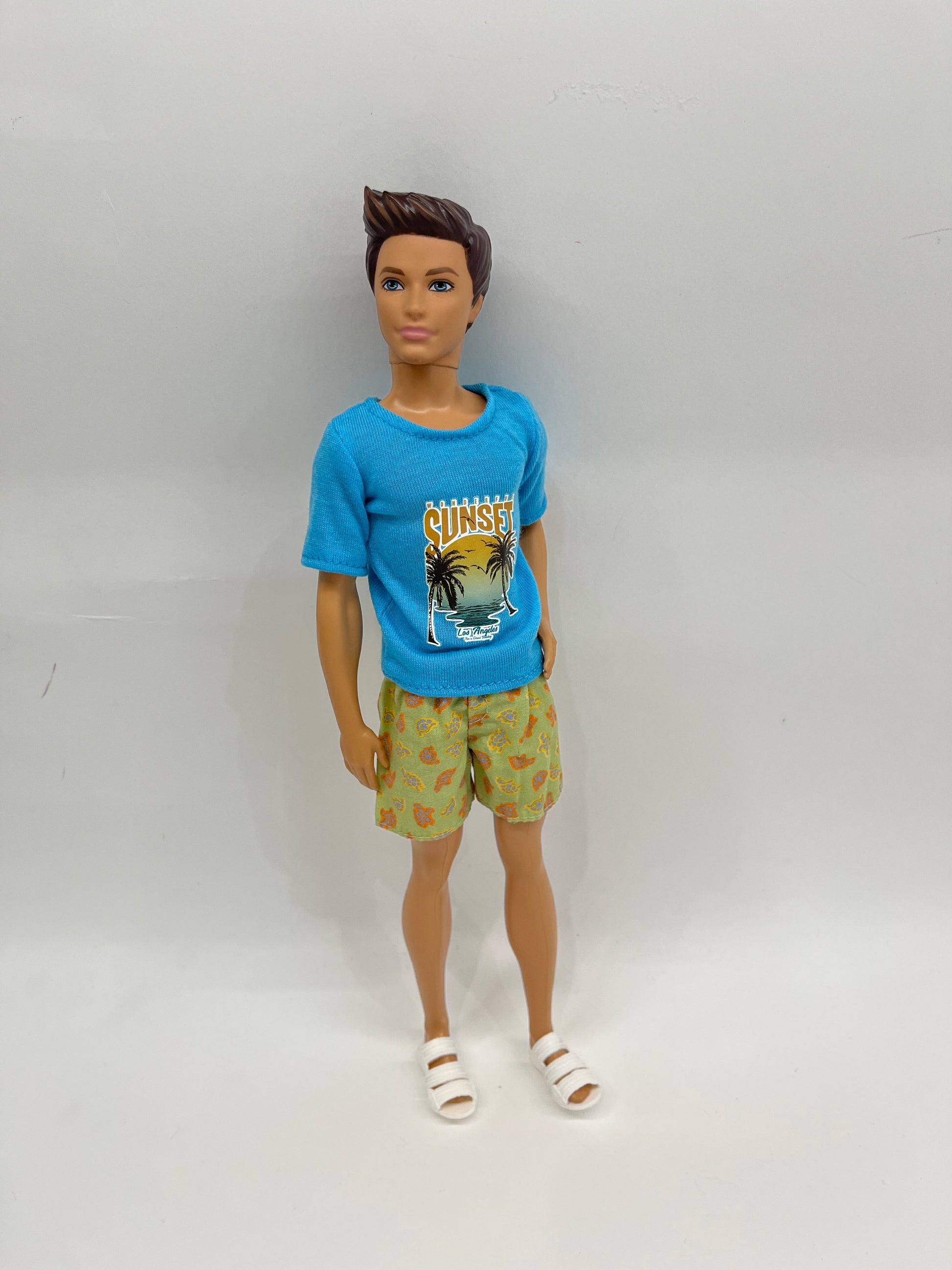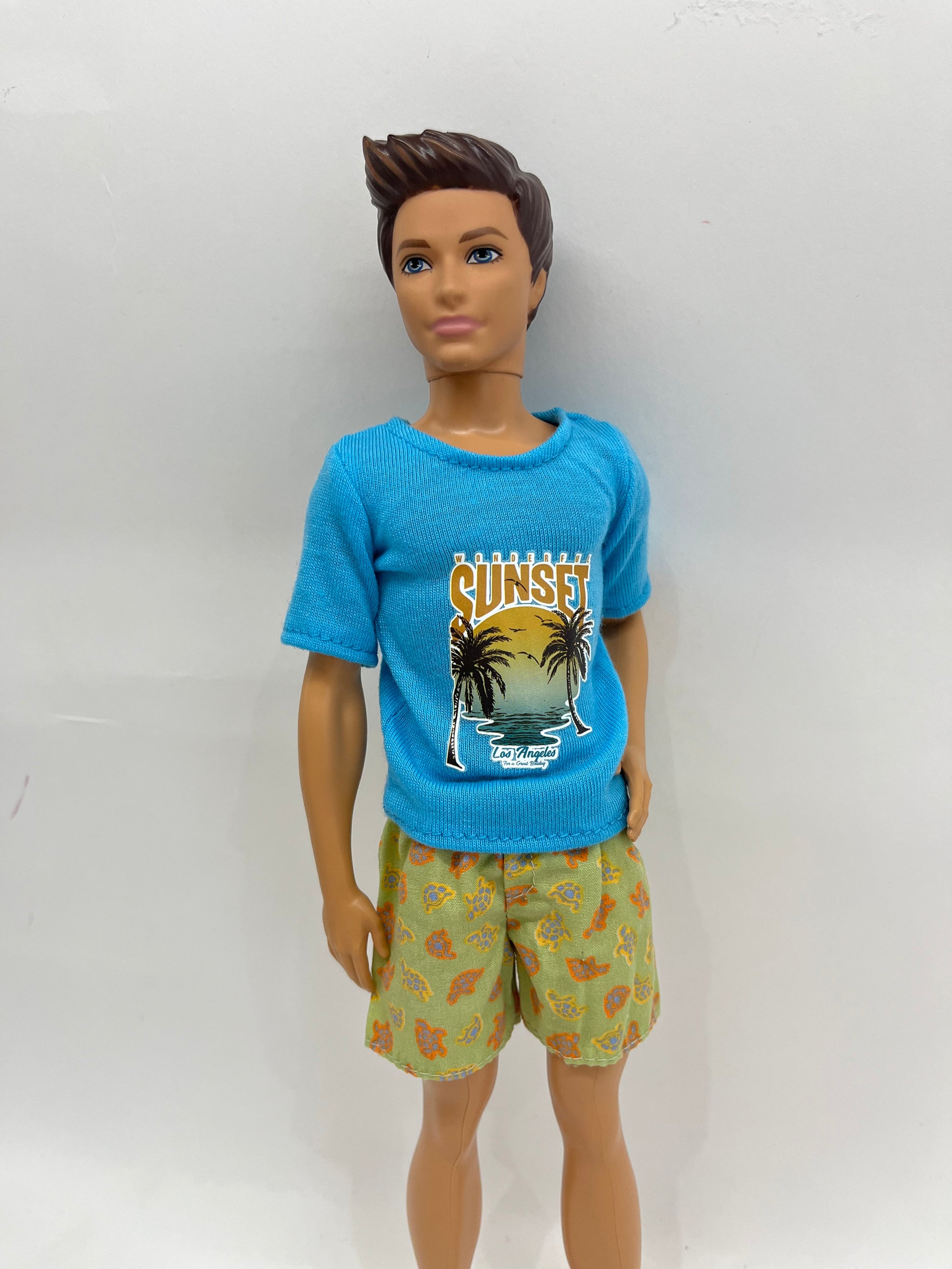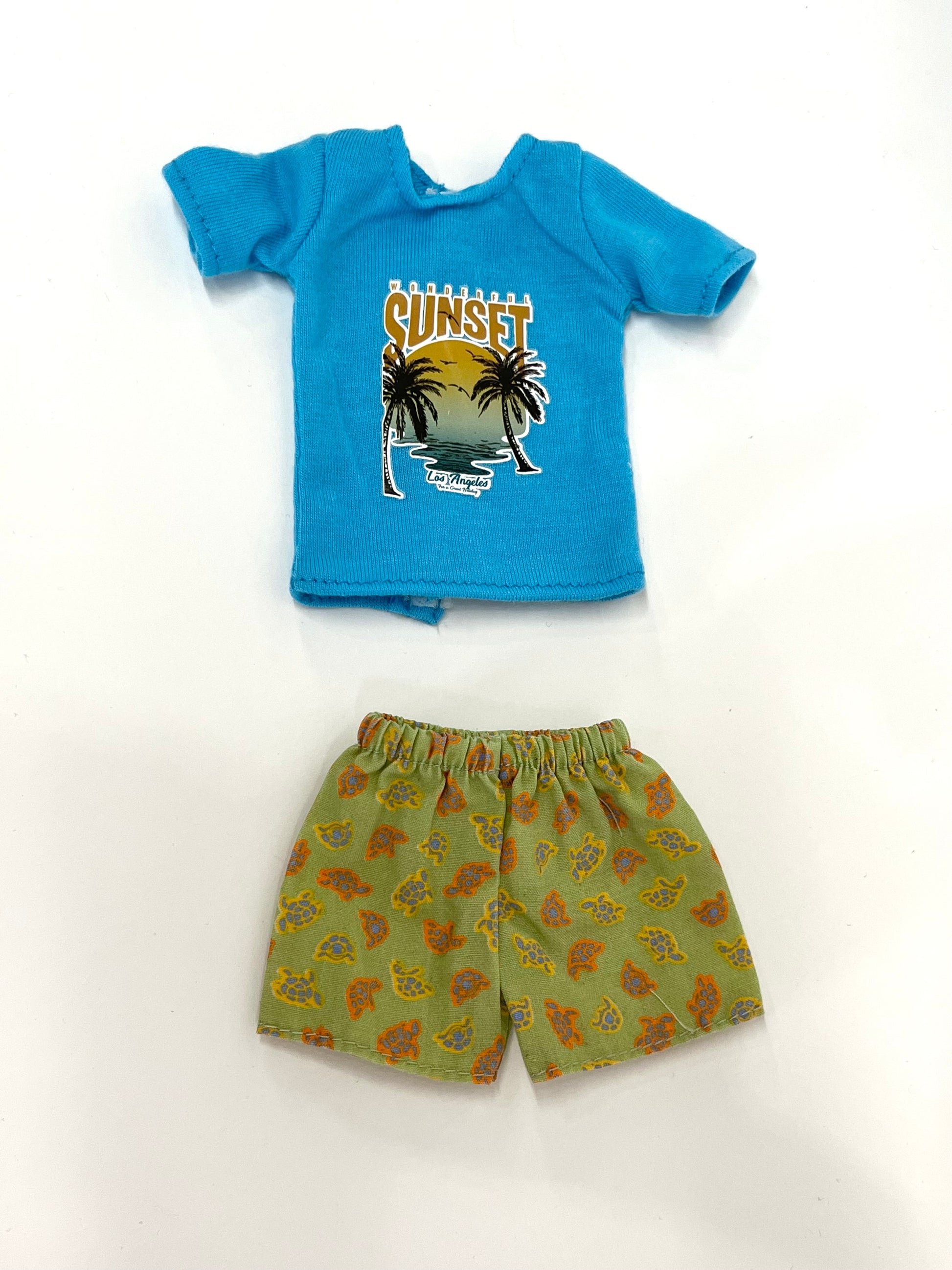 Комплект къси летни панталонки (бански) на костенурки и тениска с апликация за кукла Кен