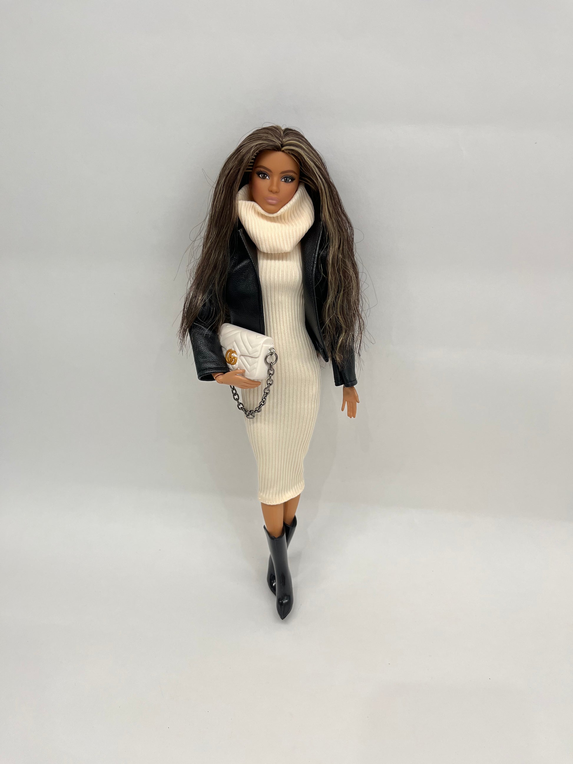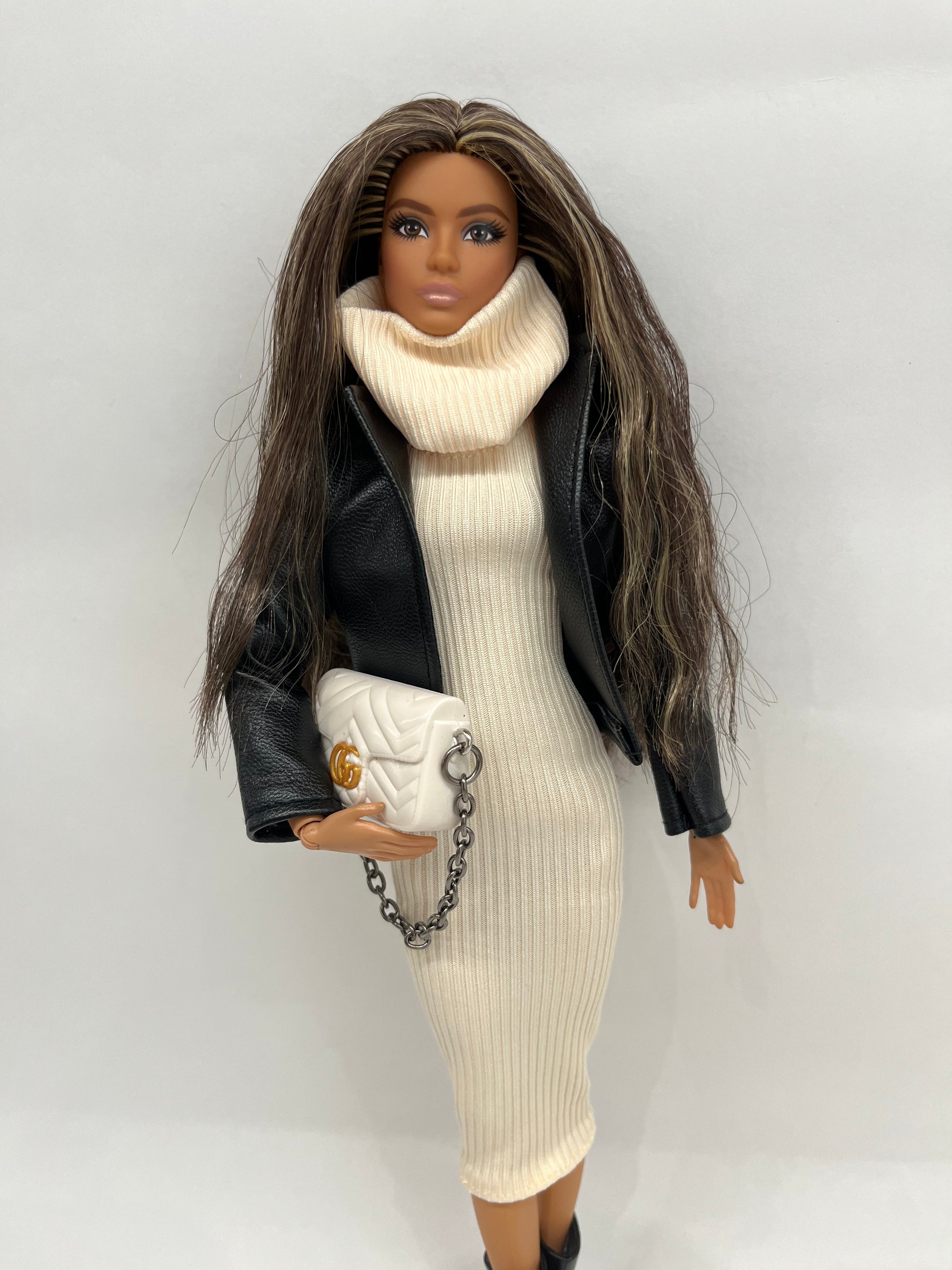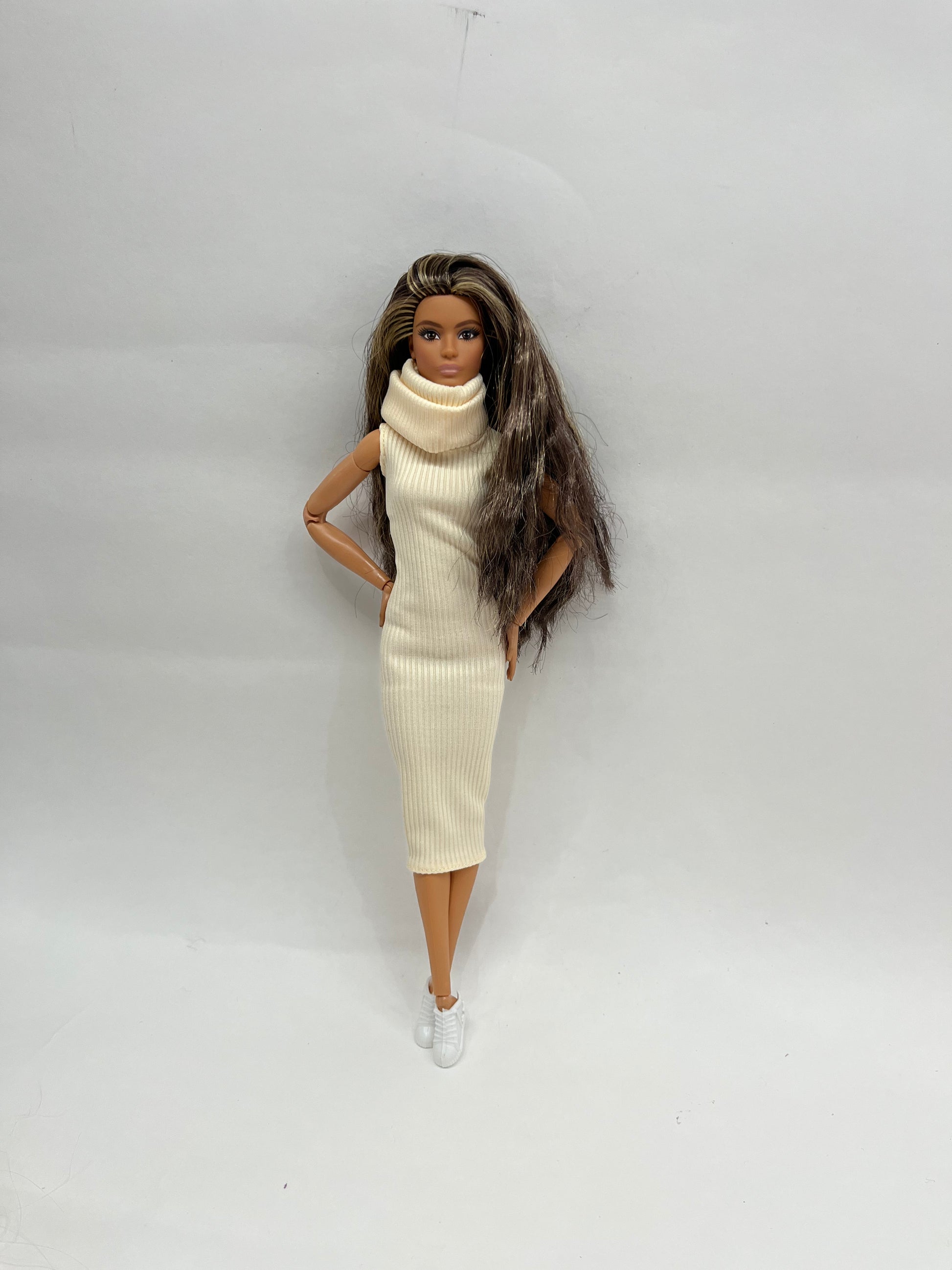 Рипсена рокля по тялото в комплект с шал. Шалът може да се носи и като бюстие или широка лента за глава. Подходяща за Barbie mtm, original и curvy