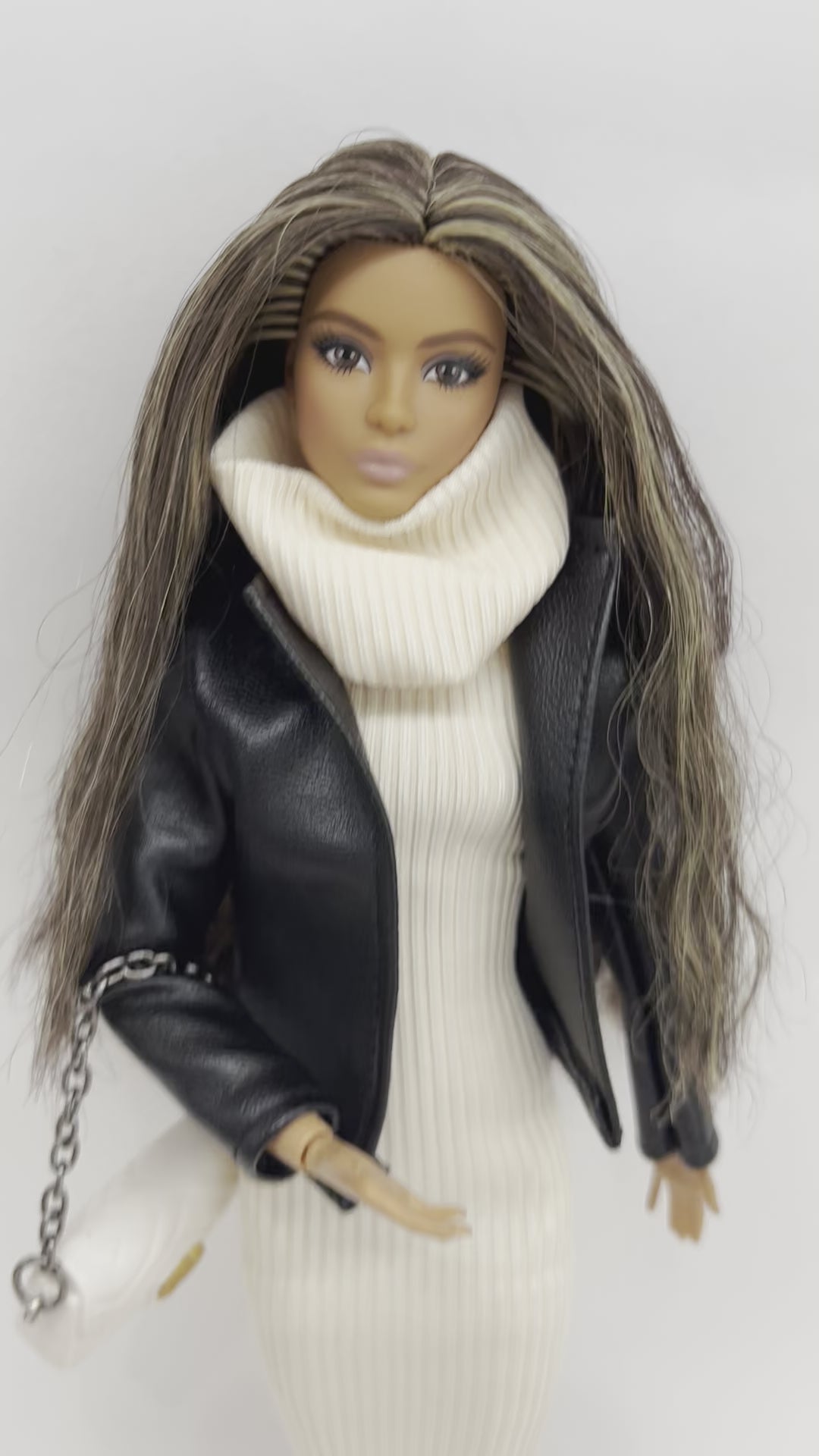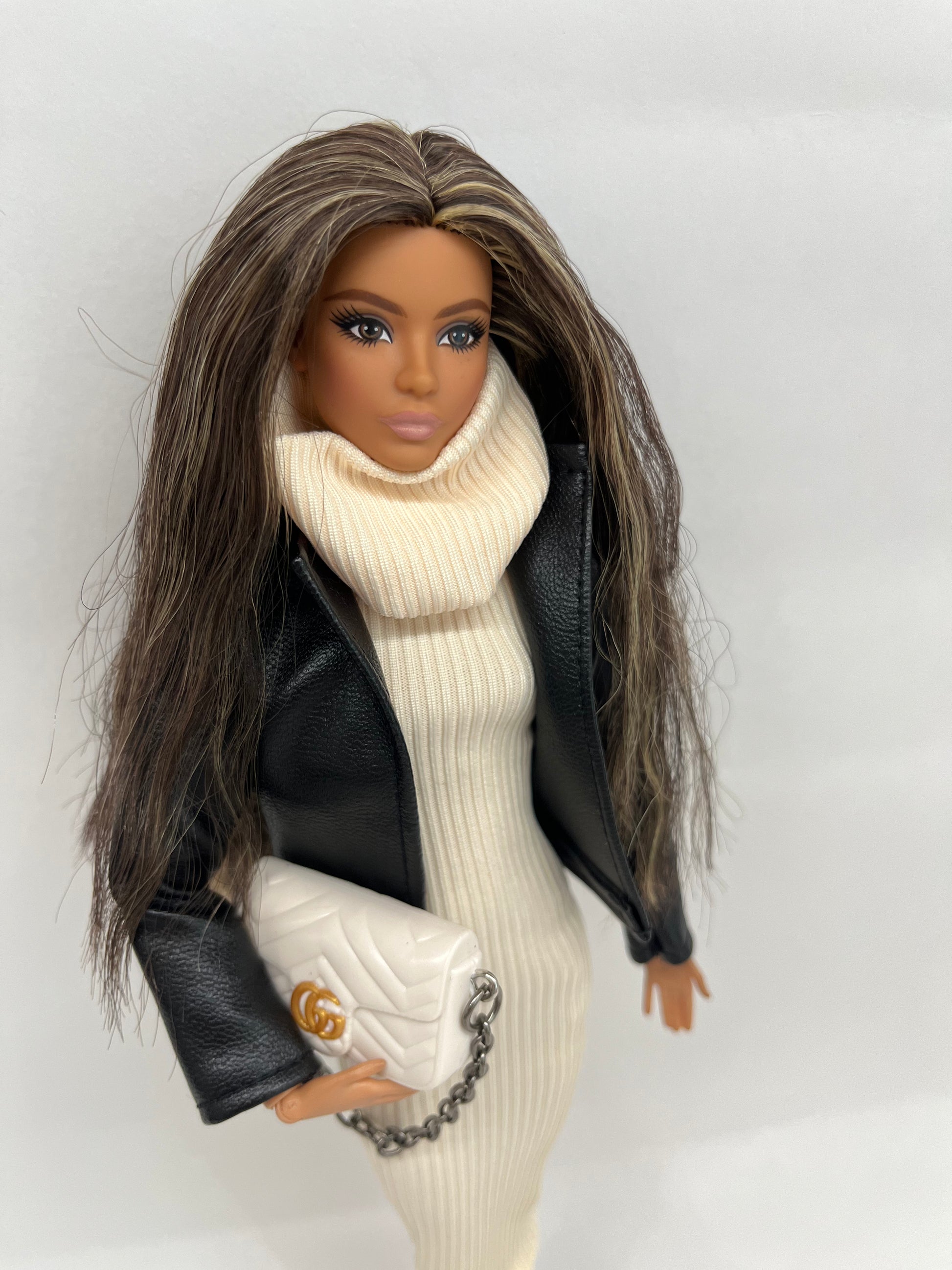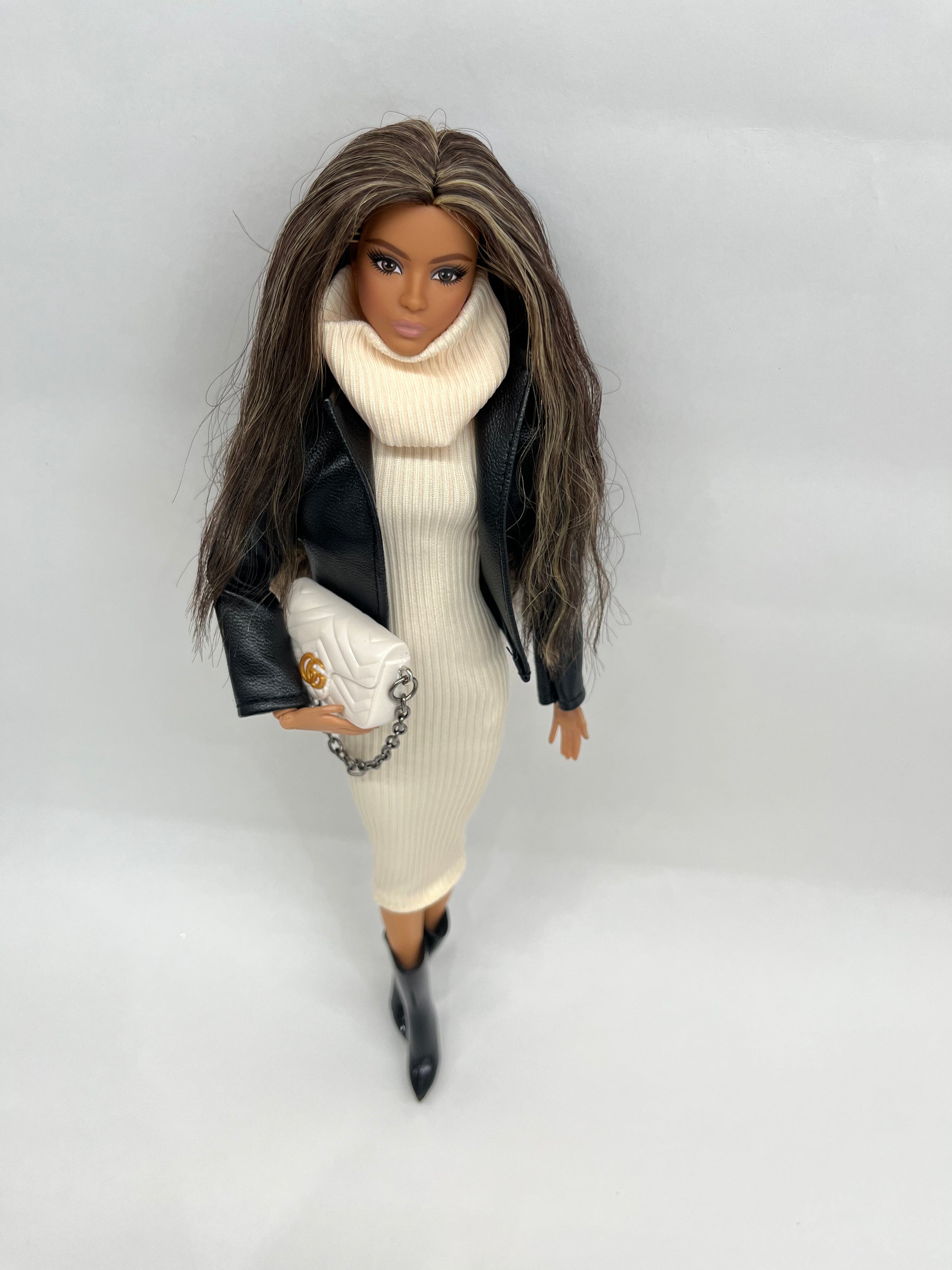 Рипсена рокля по тялото в комплект с шал. Шалът може да се носи и като бюстие или широка лента за глава. Подходяща за Barbie mtm, original и curvy