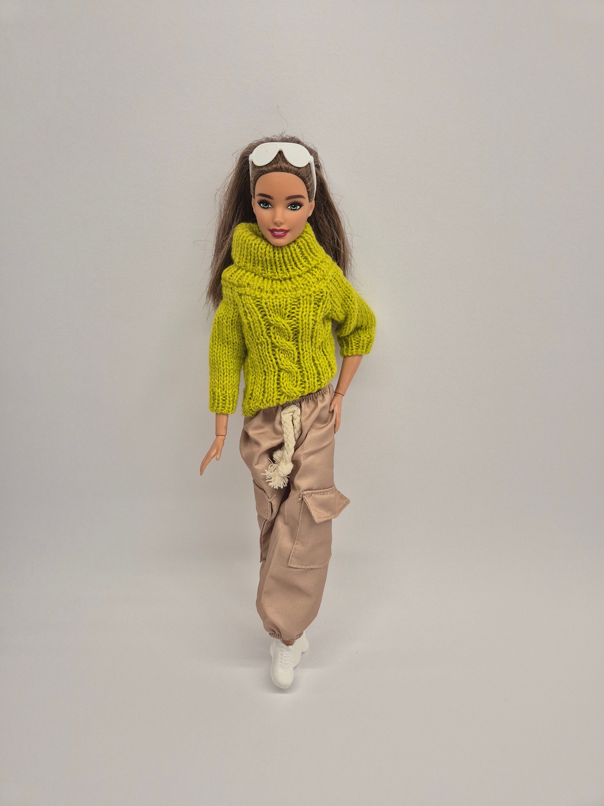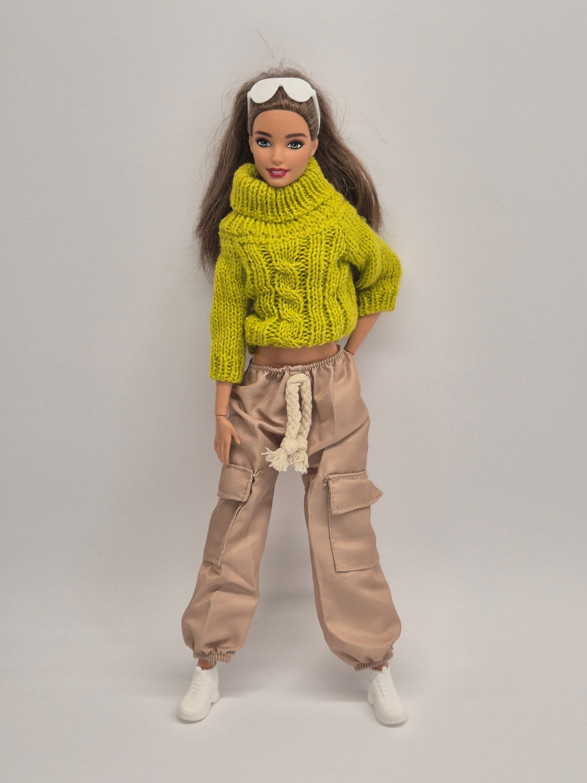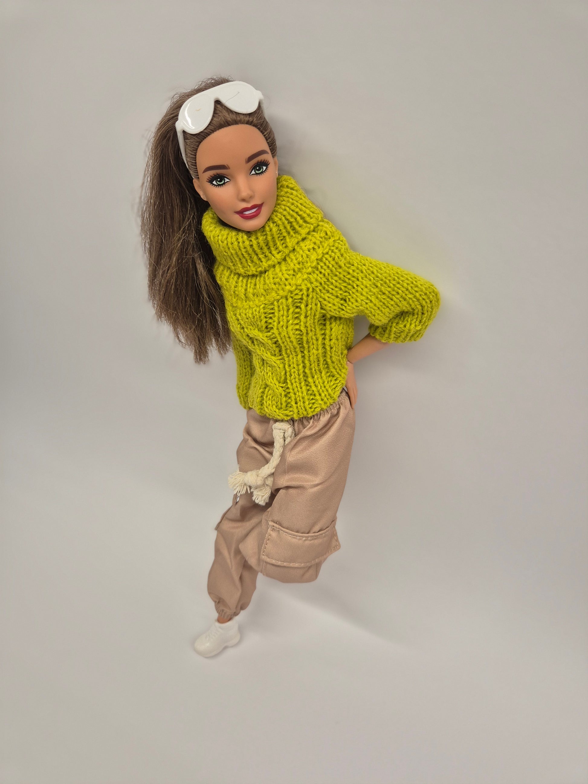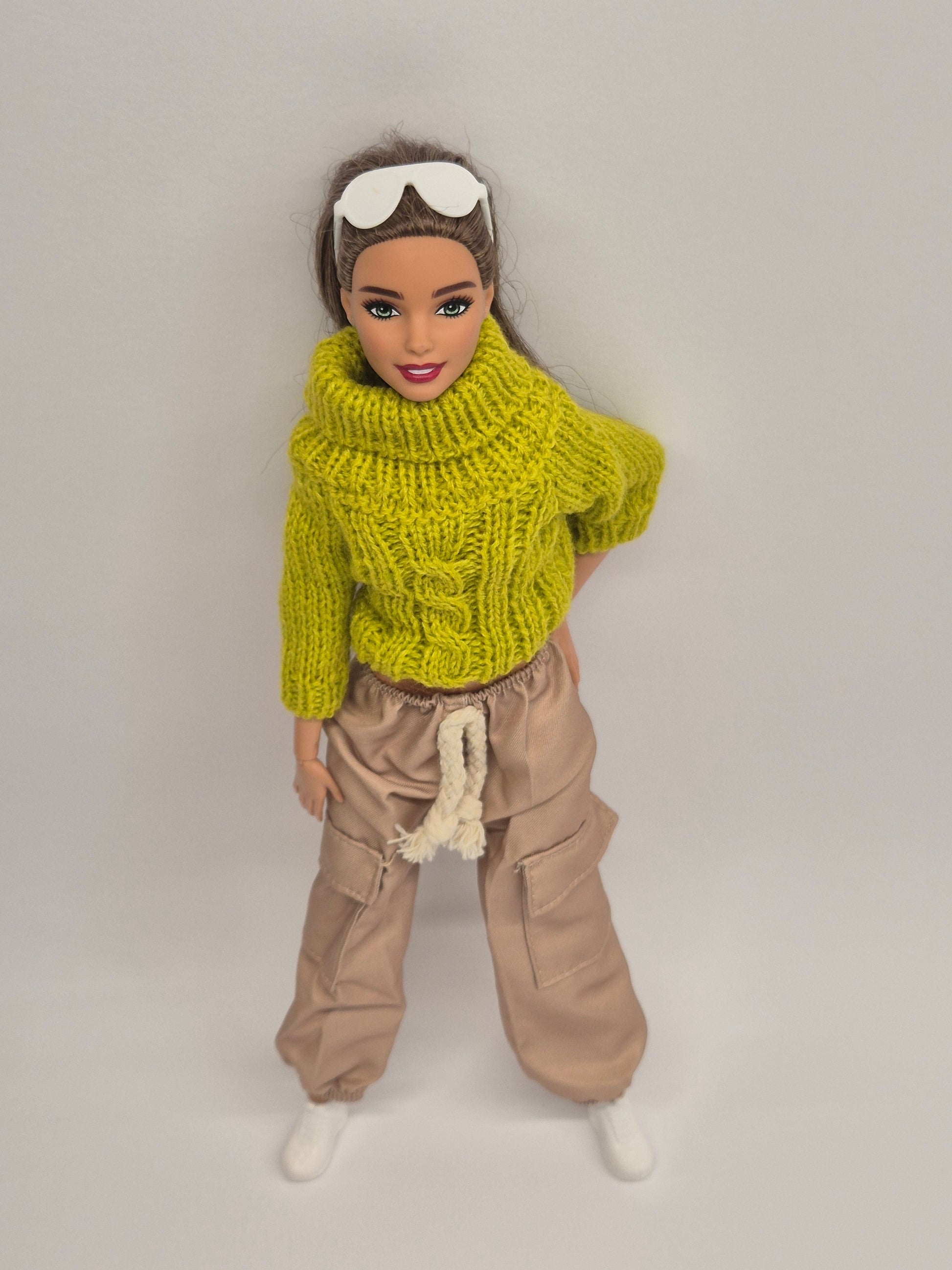 Подходящ за всички стандартни кукли Барби (28–30 см). Създай визия, която изпъква с характер и модерен дух!