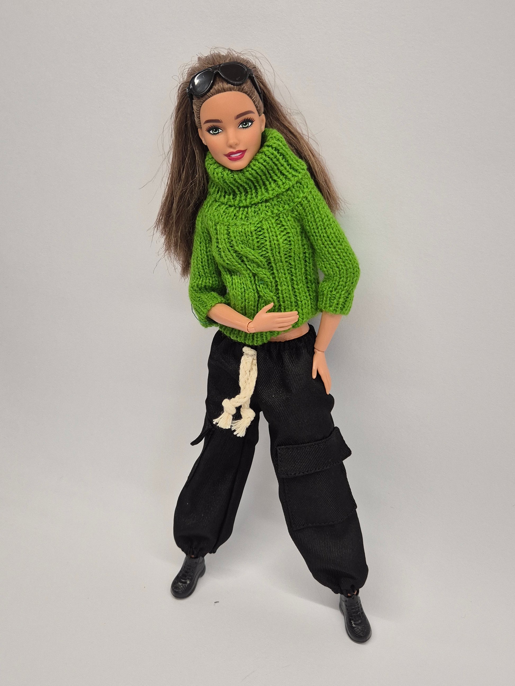 Дръзка визия за куклата, която обича градския стил и модните предизвикателства! Този комплект съчетава комфорт и модерна естетика, подходяща за всяка барби, която иска да изпъква.