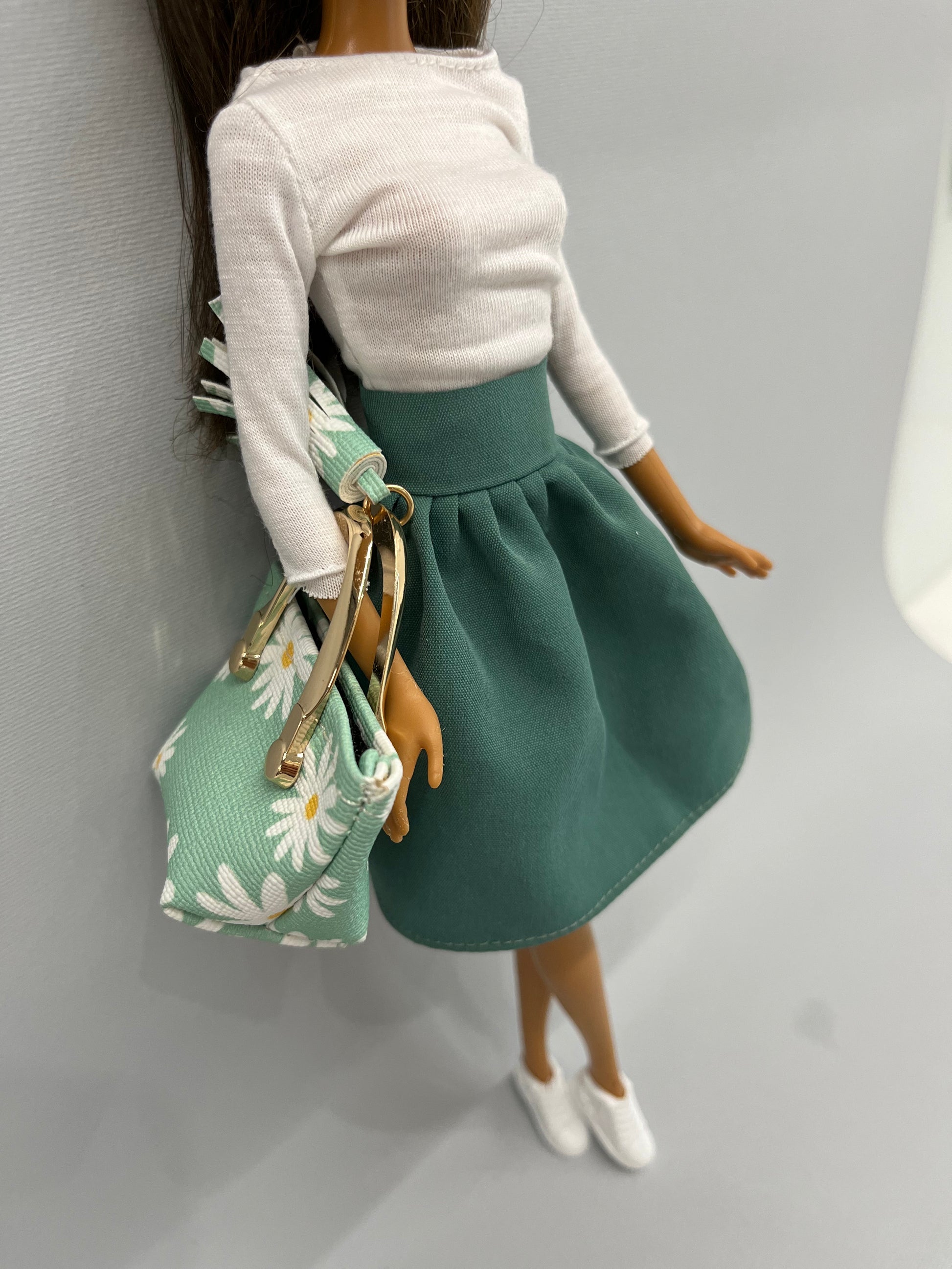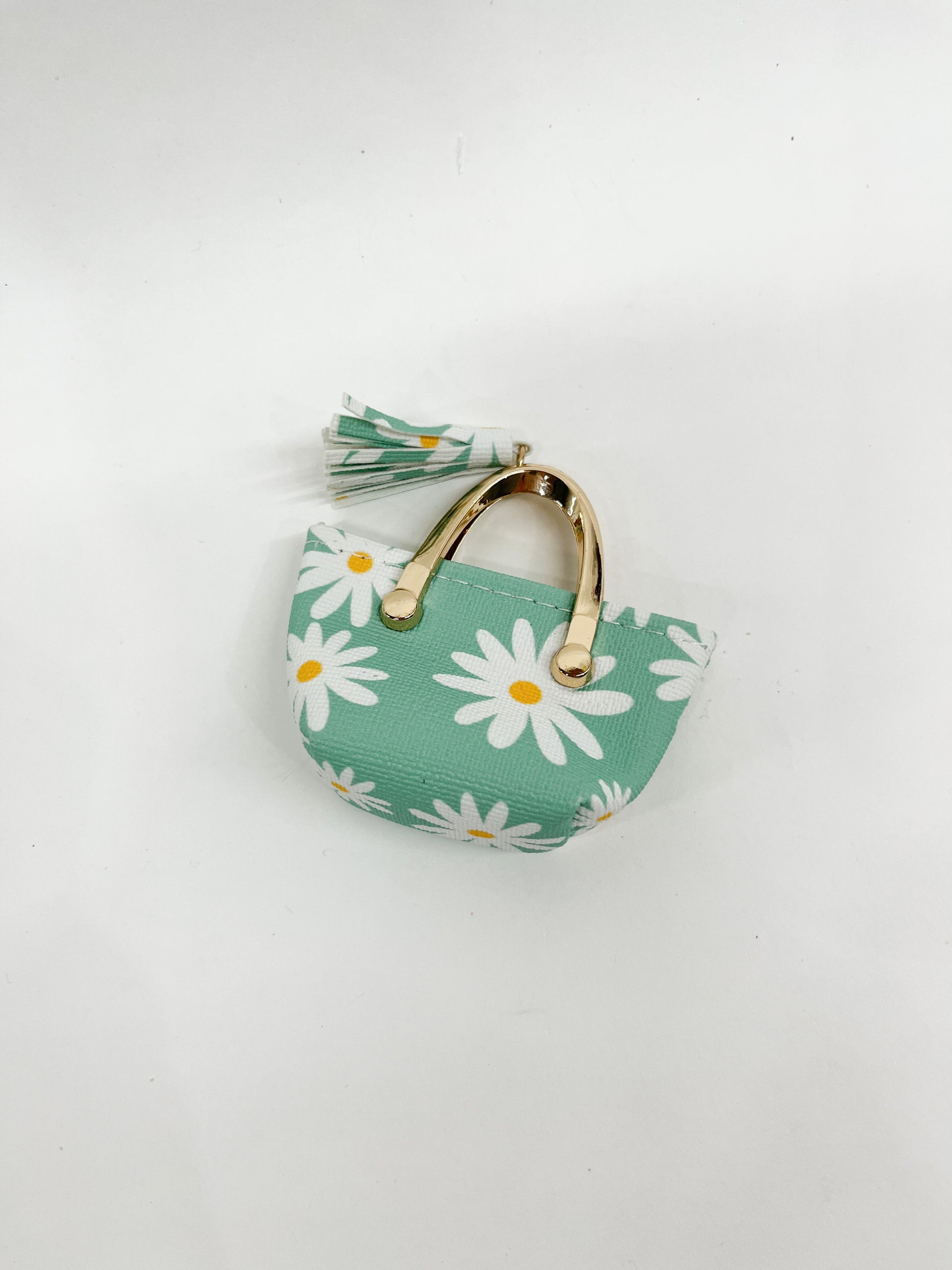 Чанта на цветя в цвят мента с отварящ се джоб и пискюл.